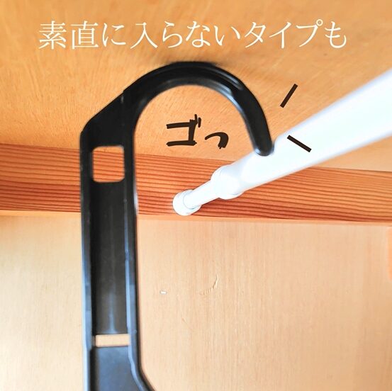 下段につっぱり棒を設置した場合、ハンガーは反対から掛けるのがポイントです。