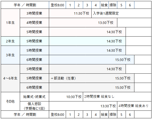 ※正確な時間は、通学される小学校へ直接お問い合わせくださいね。