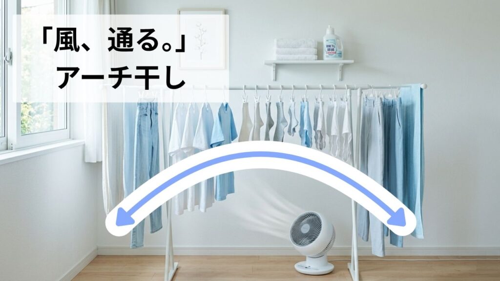 【干し方のコツ】隙間を作る「アーチ干し」と「カーテンレール」の注意点