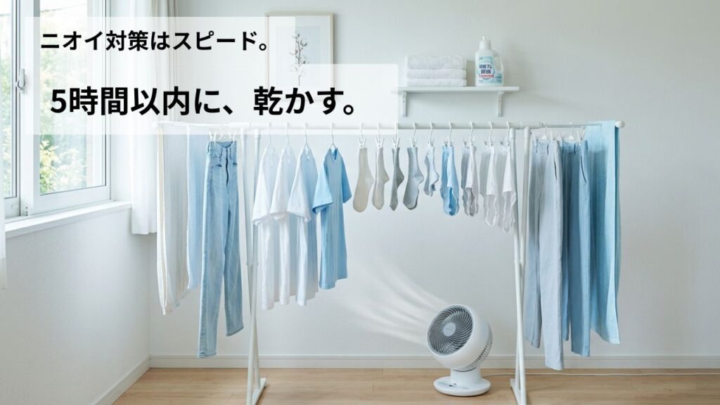 でも実は、ちょっとした工夫で乾燥スピードは劇的に変わり、イヤなニオイも防げます。